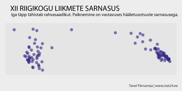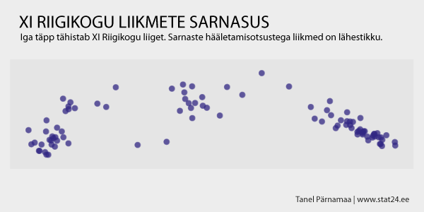 Kui me võtame jooniselt suvalise täpikese (täpike tähistab riigikogu liiget), siis sellele täpikesele kõige lähemal olev täpikene hääletab temaga kõige sarnasemalt ja kõige kaugemal olev täpikene hääletab temaga kõige erinevamalt. Ehk mida lähemal on üks täpikene teisele, seda sarnasemalt hääletavad nad ja mida kaugemal üksteisest ollakse, seda erinevamalt hääletatakse.