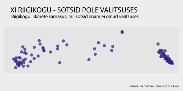Esiteks näeme, et praegu on riigikogus selgelt välja kujunenud 2 poolust – ilmselt koalitsioon ja opositsioon – mingeid vahepealseid jõude pole.