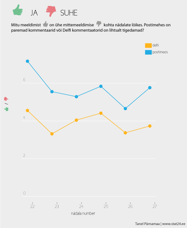 Analüüsi teema on v huvitav, aga pole päris kindel, kas kommentaatorite sapisust saaks mõõta kommentaaridele antud plusside ja miinustega. Pigem oleks siin vast abiks tulnud kontentanalüüs, mis aga on päris töömahukas.