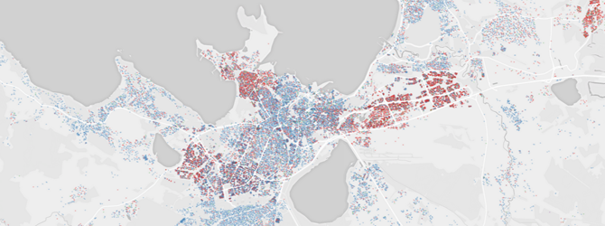 Inspireerituna mitmetest USA rassilise jagunemise joonistest [1] [2], koostasin interaktiivse kaardi, mis näitab rahvuste paiknemist Eesti eri paigus.
